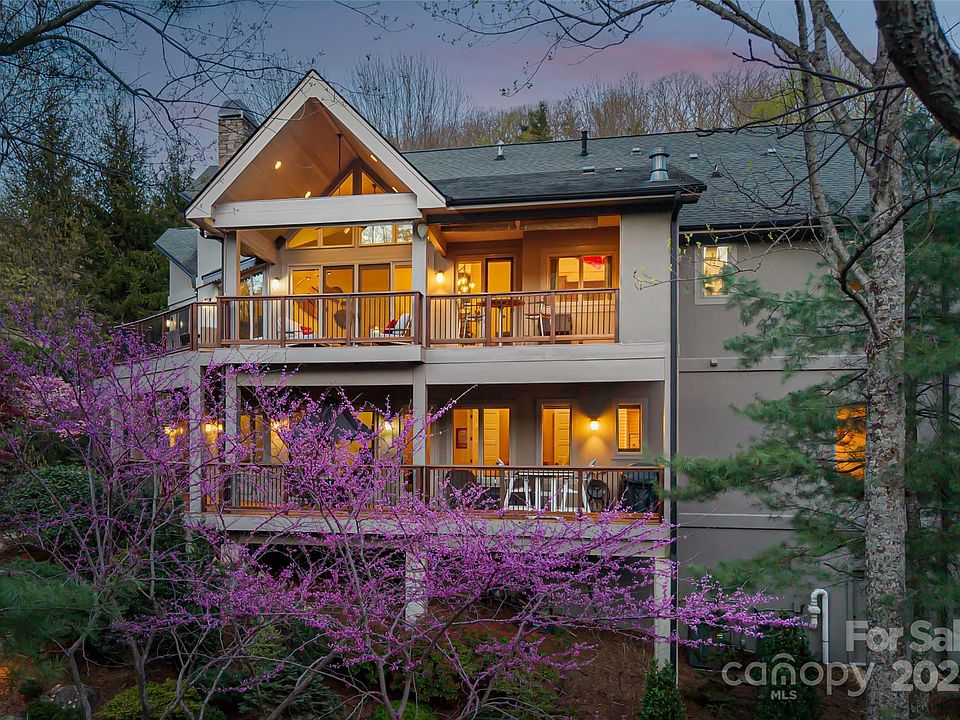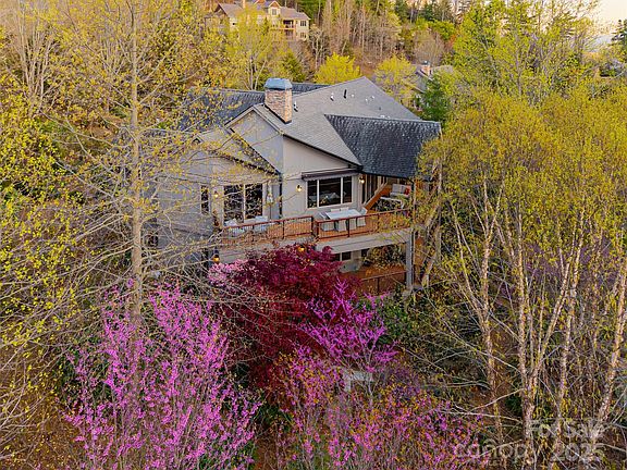 Such a value in prestigious Reynolds Mountain, this refined retreat blends timeless elegance with nature’s beauty. Backing directly onto a 16-acre private nature preserve with its trail system, the residence offers treetop views, wooded privacy and the unique privilege of daily immersion in the natural world. Just 10 minutes from downtown Asheville, it is a rare sanctuary that balances tranquil seclusion with effortless city convenience. The home’s design embraces the outdoors at every turn. Expansive decks—covered and open—extend the living space, offering lovely mountain sunsets, alfresco dining and quiet moments of reflection. Tiered stonework gardens, meandering paths, and self-watering native plantings create a setting that feels curated and organic, while a covered outdoor kitchen with Viking grill, sink and refrigerator makes entertaining as seamless as it is stylish. Inside, soaring windows frame year-round mountain vistas and bathe the open floor plan in natural light. The great room, crowned by vaulted ceilings and anchored by a stacked stone fireplace, flows gracefully into a newly renovated kitchen featuring stainless steel appliances, granite surfaces and an expansive custom island. Rich tigerwood hardwood flooring adds warmth, while a spacious walk-in pantry ensures function and refinement. The main-level primary suite offers a tranquil retreat with vaulted ceilings, a private deck, and a spa-like bath with an oversized jetted tub. A corner office, crafted with bespoke woodwork by a local artisan, makes working from home a pleasure. The lower level is designed for comfort and entertainment, boasting 10-foot ceilings, a home theater with eight reclining chairs and Sony projection system, a wet bar with wine cooler, and a generous family room that opens to the lower deck. Bedrooms on this level, including a secondary suite with private deck and spa bath, provide inviting accommodations for guests. A flexible bonus room—ideal for hobbies, yoga or creative pursuits—offers additional versatility, while a potential fourth bedroom with separate entry enhances the home’s adaptability. Thoughtful systems and upgrades underscore the home’s quality such as a Generac generator, dual-source HVAC, central vacuum, tankless water heater, iWave air purifier, and Energy Star certification reflect a commitment to efficiency and peace of mind. A three-car garage with epoxy flooring, custom cabinetry and lighted workbench completes the offering. Blending sophistication, comfort and the restorative beauty of nature, this Reynolds Mountain residence is more than a home—it is a retreat, a sanctuary and a lifestyle without compromise.