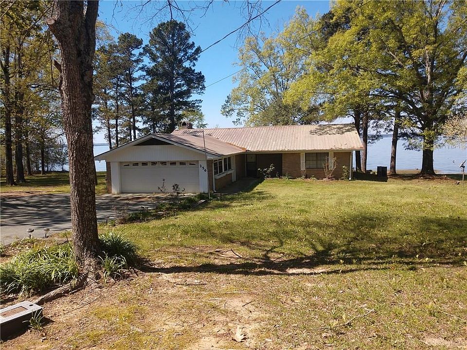 Lovely Water Front Brick home located on Toledo Bend's main lake. This 3 bedroom 2 bath Large Den/Living room, comes with Propane Fireplace with heat-o-later and remote. Fans throughout the home, Sliding Glass doors from master bedroom, and Living room with a spectacular view of the lake. A (2) Stall Boathouse, Large enclosed screened patio off the living room, Full house generator, a remodeled Kitchen with slides, etc. and new outdoor lighting. water front has gentle slopping to the water all of this on 0.52+/- acre lot.