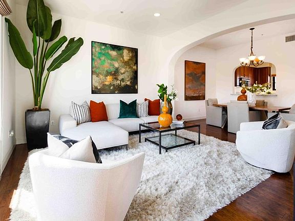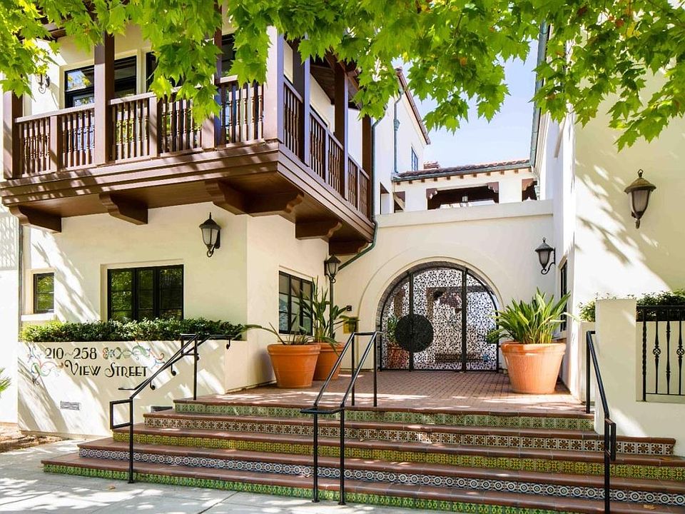 The shops and restaurants of downtown Mountain View are just steps away from this luxury 2-bedroom, 2.5-bathroom condo located on the top floor of a modern complex. Over 1,300 square feet of living space enjoys hardwood floors, dramatic 10ft ceilings, Carrara marble countertops, an open floorplan highlighted by a chef's kitchen, two en suite bedrooms, and a large balcony accessed from multiple rooms for indoor/outdoor living. Plus, this home offers a laundry closet with a stacked washer and dryer, as well as gated underground parking, storage, and elevator access. Find yourself within walking distance of Mountain View's iconic Castro Street, Caltrain, and VTA Light Rail, with Highway 85 just a 5-minute drive away. And children may attend top-ranked schools Landels Elementary, Graham Middle, and Mountain View High (renter to verify eligibility). This pricing is for 1 year. Happy to discuss shorter or longer.