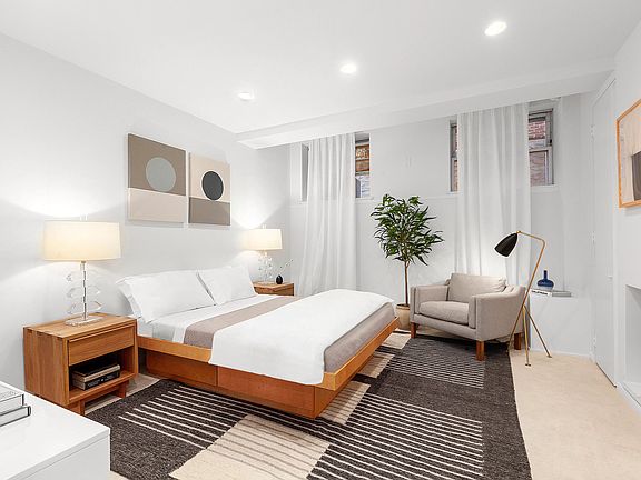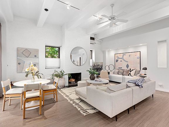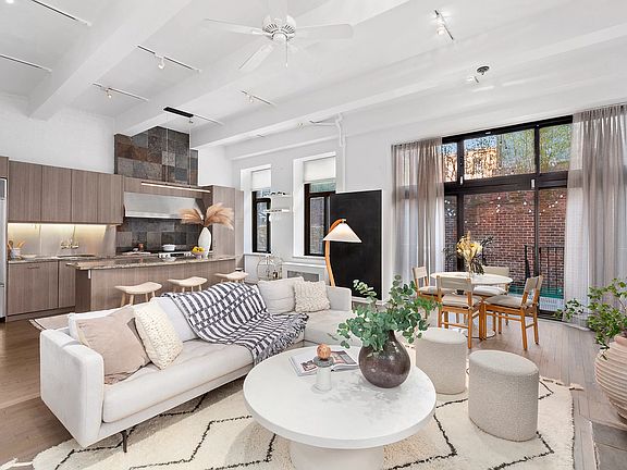 This newly renovated private West Village Loft offers Townhouse living in a private gated community. A private multi-level outdoor garden space, highlights this stunning 2 bedroom, 2.5 bath duplex loft with 12 foot ceilings, wood burning fireplace, over-sized windows, with amazing light and new renovated finishes, situated in the historic Private Gated Community of Hudson Mews. With a recently renovated chef's kitchen and new gray hardwood flooring throughout, this glorious private duplex loft has a patio and garden with several sitting and dining areas and is accessed by the entire top floor of the duplex through floor-to-ceiling glass doors. NOTE: Both bedrooms are in the lower level and have windows. Minimum down payment 20% The private outdoor space is an integral part of the entire living/dining area, creating an inviting entertaining space. A renovated kitchen with new cabinets, appliances and huge windows with garden views, is a cooks dream and an entertainers delight. A set of stairs leads to the lower level of the duplex and creates a real townhouse feeling. The primary bedroom suite is spacious with high ceilings, a huge walk in closet and a dressing area/home office/nursery. The large marble en suite bath is sensuous and tastefully finished. The second bedroom is equally as spacious with plenty of storage and its own full bath. This multi-leveled loft home with a front courtyard and private back yard, brand new finishes is truly a uniquely private home in The West Village. 256 W 10th St is a 6 story co-op building in West Village with, private gated entrance gardens and a beautiful common roof terrace. It was built in 1911 and has 30 units. Storage unit is included. Flip Tax 2% paid by seller