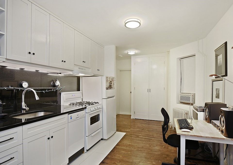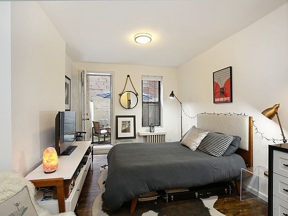 GRD-E is a rent-stabilized studio with a south facing, private patio. This home will fit your furniture and comes with an over-sized closet with storage space. The modern kitchen features granite counters, a dishwasher and full appliances. Warm walnut floors and an updated bathroom complete the comfortable living experience.