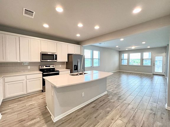Welcome to this stunning home on a corner lot in Jarrell, TX! This 3 bedroom, 2 bathroom house is ready for move-in and offers a range of amenities to enhance your living experience. Enjoy the convenience of a washer/dryer in unit, cable-ready connections, and air conditioning for year-round comfort. The open floor plan includes a built-in office space, perfect for those who work from home. The kitchen features granite countertops, a center island, and built-in features for added convenience. Retreat to the private fenced backyard or relax on the covered back porch. The primary bedroom boasts a walk-in shower, double vanity and walk-in closet for ample storage. Residents also have access to community amenities such as a sports court, playground, pool, and splash pad. Don't miss out on this opportunity to make this beautiful house your new home!