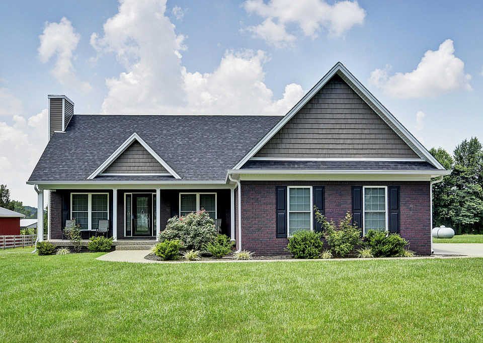 Don't miss out on this custom built home in Bullitt County on almost an acre! 256 Windy Ridge Road is a little piece of paradise, in a country like setting. This beautiful 3 bedroom, 2 bath Ranch offers an open floor plan, vaulted great room, and gas fireplace. Builder upgrades include front door with transoms, hardwood flooring in great room, dining area and hall. The kitchen has tile flooring, dishwasher, microwave, newer refrigerator and custom cabinetry. The bathrooms have tile and the bedrooms have carpet. The master bedroom with includes vaulted ceilings and the bath has a standup shower and garden tub. This charming home also offer a utility room with linen closet. The driveway was originally gravel and has since been paved. Enjoy the beautiful surroundings from your covered front porch or large covered back porch. You won't be disappointed in this one of a kind home and property!