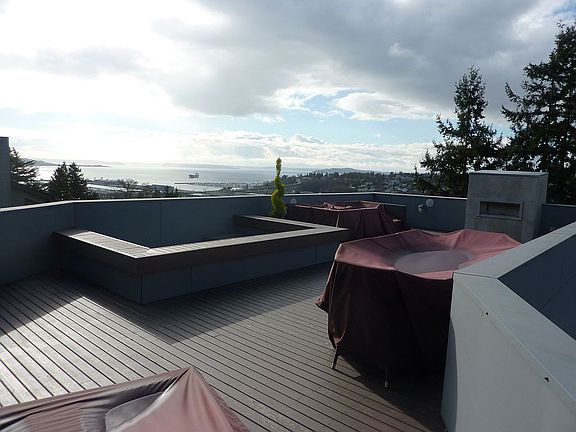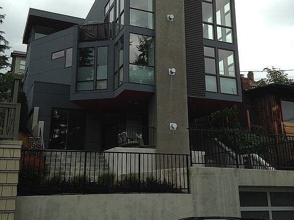 Views, View, Views. This house has water views from every single level and mountain views from the top two floors. Views from the roof top deck span from California Avenue in West Seattle up to the Kingston Ferry crossing a full 180 degree Puget Sound View. 5 bedroom, 3 full and 2 half bath, theater room and gym, two car garage with storage. Rare 12th ave house with a back yard for the dogs or your little ones. Master in-suite design with views of the Puget Sound from your bed or from the master bath's steam shower. Master suite has custom concrete sink, enclosed private toilet and the entire master closet is cedar lined. Master bedroom is on same level as two of the other bedrooms. Mother in law suite with private full bath for privacy for guests, mother-in-laws or au pairs. Six Mitsubishi air conditioning units, radiant in floor heating throughout home and cross ventilated room design to allow for venting of house. Four fireplaces with the roof top deck's fireplace made with an open design to be able to roast marshmellows! Dumbwaiter from the basement to the Chef's kitchen with full custom cabinets and top of the line furnishings (Miele and Wolfe). Too many options to list them all... come and fall in love with a new contemporary Seattle home close to the city.