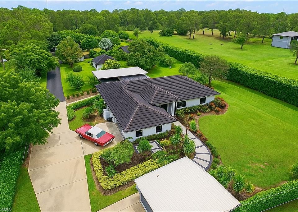 Fully furnished and move-in ready! This unique rental opportunity is located on a private 2.27 acre lot surrounded by lush tropical landscaping and fruit trees including mango, guava, avocado, papaya, lemons, and more. The property is fully fenced with a natural hedge of calusias, features impact windows, and a private automated gate ensuring privacy, security, and peace of mind. This property is a perfect fit for remote workers, traveling nurses, Ave Maria University students, or seasonal vacationers looking for a tranquil lifestyle just minutes from city conveniences. The large outdoor spaces make it ideal for families, gatherings, and extended stays. Location Highlights: 23 miles to Downtown Naples (approx. 35 minutes), 20 miles to Naples Beaches (approx. 30 minutes), 12 miles to Corkscrew Swamp Sanctuary, 3 miles to Publix and CVS, easy access to I-75, approx. 10 miles to Arthrex Headquarters, approx. 20 miles to Ave Maria University, approx. 22 miles to Seminole Casino Immokalee, close to Corkscrew Regional Park with water park, sports facilities, and recreation areas, and convenient to local schools. Main House Features: 4 bedrooms, 3 bathrooms, plus 1 sofa bed; the 4 room could be used as a game room with Florida kitchen and private bathroom; fully furnished with WiFi, full kitchen, and bathroom essentials; bikes and beach equipment available upon request. Guest House (available separately): 1 bedroom, 1 bathroom, 1 futon (sleeps up to 4); fully furnished with complete kitchen; can be added to the main house rental for an additional fee; discount available when renting both homes together. Outdoor Amenities: spacious kiosco with seating area for family gatherings; fire pit for cozy evenings; playground area for kids; expansive yard with ample room for outdoor games; plenty of private parking for multiple cars inside the gated property; relaxing Jacuzzi surrounded by tropical greenery. Access & Security: automated gate with keypad access; keyless entry on the main house; impact windows throughout. Additional Notes: outdoor spaces are shared with the guest house on the property. The guesthouse is rented separately but can be combined with the main home if available. This unique property offers flexibility, comfort, and the perfect balance of privacy and convenience.
