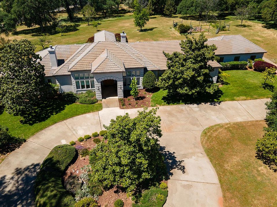 COUNTRY ESTATE! Idyllic 7+ acres and over 3700sq.ft. in a 1-story custom home is only the beginning. Thoughtfully designed "split floorplan" with the primary bedroom suite & an adjacent den/study (potential 4th bedroom) on one side & a secondary bedroom wing with a charming reading nook window bench seat. A gracious entry and foyer lead to the formal dining room & step-down living room with elegant fireplace & mantel. The family room has a brick hearth and adjacent wet bar and entertaining pantry. The kitchen is spacious with a sunny breakfast area and access to backyard/orchard area and features a large butler's pantry with abundant storage. With a stately presence on extremely useable acreage with a park-like oak grove and views of Pine Hill. Green Springs Ranch is a gated rural community nestled between Green Valley Rd & Serrano El Dorado Hills in the beautiful Sierra Foothills. No Mello-Roos. Ready for your personal touch! Amenities List attached to MLS.