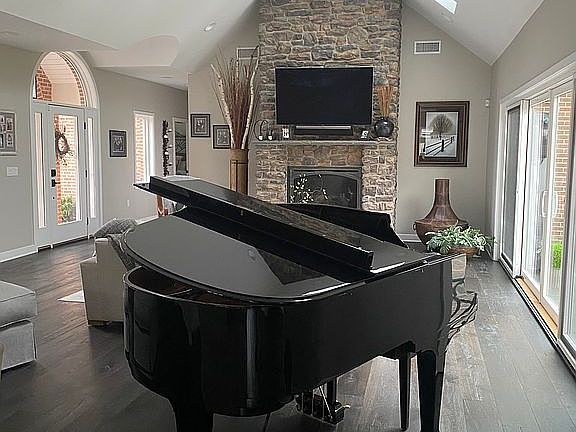 Custom finished basementWine chillerCoffee stationAll-glass sliding doorsWhite birch treesRadiant heatButler pantry