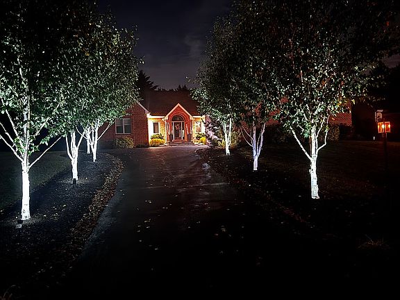 THE OUTDOOR SPACES ARE BEAUTIFULLY LANDSCAPED AND PROFESSIONALLY DESIGNED. WHITE BIRCH TREES GRACEFULLY LINE THE DRIVEWAY, WHILE THE YARD BOASTS AN ABUNDANCE OF ANNUAL FLOWERS, CAREFULLY SELECTED SPECIMEN TREES, AND A FULLY INSTALLED SPRINKLING SYSTEM. NIGHTSCAPING THROUGHOUT THE PROPERTY HIGHLIGHTS THE BEAUTY OF THE TREES, CREATING A STUNNING AND INVITING AMBIANCE AFTER DARK.