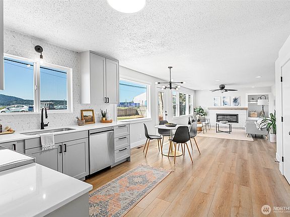 Nicely renovated and ready for you on Gooseberry Pt with bay views from kitchen sink and living room. Own a slice of community beach access to launch your kayak, and explore the sound. Park your RV or boat or perhaps even build an adu in the back of the property. With the ferry, boat launch, and convenience store around the corner, this is a wonderful lifestyle property to enjoy, rent out, or travel from. This is not leased land, you own it. With a new roof, kitchen, bath, tasteful finishes, and even a fresh crawlspace. An open-design layout, detached shop/garage, and fully-fenced front yard just needs your sense of adventure. Seller financing is an option!