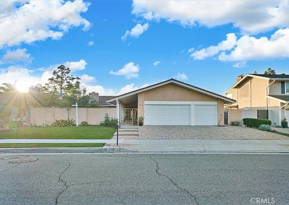 Come for the neighborhood, stay for the sunsets! This spanish-inspired single story home in "Marywood Hills" of Orange is the perfect sprawling home with 2,185 sqft with no interior stairs and views from the kitchen, dining, family, room and master bedroom. Catalina Island to Long Beach can all be seen from this perched position straight from your kitchen sink or dining room table. Passing through the beautiful entry gate into the courtyard you can experience the outdoor privacy and garden that gets perfect morning light. The iron double doors open to terra cotta color tiles and gorgeous vaulted redwood exposed rafters. There are multiple living spaces including a fireplace in the living room adjacent to the dining room. The kitchen abuts the family room that opens to the rear yard and patio. The master bedroom and bath are spacious and include dual sinks and walk in shower. There is inside laundry and the garage is a car enthusiast's dream with extra high roll up garage and EV charging stations. The roof is DecraTile with nearly 30 years remaining as well. The home is conveniently located near Orange Lutheran High School, Villa Park, and shopping centers.