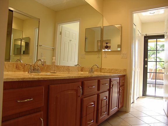 Pristine and meticulously maintained 2903 sq ft, 3 br 2ba 2 car Pool home for sale in the most desirable area of Boynton Beach, Golfview Harbour. Fully fenced backyard, tiles throughout, brand new kitchen cabinets and granite counters with Stainless steel appliances, master bathroom with double sink and body spray shower,large walk in closet, beautiful main entrance door, hurricane rated garage door, impact hurricane sliders and windows on rear of home, wired for back up generator, central vacuum, paved patio with wet bar, pool with emerald black pebble tec, electric pool heater and pump, new paint in and out, all new 2'' window blinds, newer roof, 3.5 ton A/C, landscaping with sprinkler system around the house, move in ready. No HOA and pets allowed. A must see Priced to sell