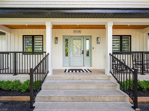 Nestled in the tranquility of the countryside, this custom-built Bungalow offers over 5,000 square feet of finished living space, uniting refined luxury with the warmth of country living. With 6 BEDROOMS and 4.5 BATHROOMS, this home has been thoughtfully designed to accommodate both everyday family life and grand-scale entertaining. You are greeted by soaring ceilings, expansive windows, and wide plank white oak flooring that set the tone for timeless elegance. At the heart of the home lies a CHEF’S KITCHEN, complete with high-end appliances, custom cabinetry, and a generous island. Open-concept living and dining areas flow seamlessly, filling the home with light and offering effortless connection to the outdoors. The primary suite is a private retreat, with a spa-inspired ensuite and 2 large walk-in closets. Additional bedrooms provide comfort and flexibility for family and guests alike. The fully finished lower level offers endless possibilities for recreation, fitness, or a media lounge. A tandem garage featuring a drive-through to the backyard makes for easy access and extended vehicle storage. Plus, a large detached garage provides ample space for a workshop, additional vehicles, or storage. Outdoors, the property continues to impress with expansive grounds designed for relaxation and entertaining. Whether it’s quiet mornings on the covered porch, or evenings gathered under the stars, this property delivers a lifestyle as remarkable as the home itself. Ideally located, just minutes from local amenities, major highways, golf courses, trails and charming farms with fresh local produce. This estate is more than a home—it’s an experience of luxury, space, and serenity in the heart of the country. Luxury Certified.