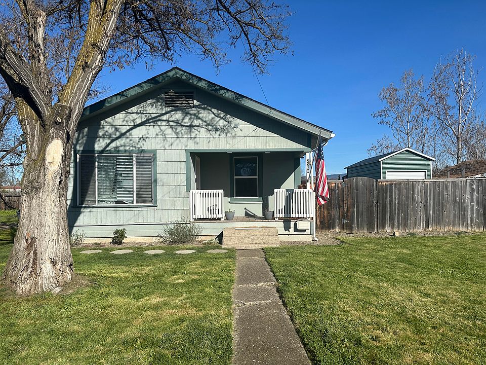 Nestled in a sought-after neighborhood, this charming starter home awaits your personal touch. With endless potential, this property offers a spacious open kitchen and living area flooded with natural light through large windows. While in need of some renovation, the kitchen boasts plenty of counter space and cabinets, perfect for customization to suit your needs. The oversized bathroom presents an opportunity for transformation, featuring ample storage and a full bathtub. Outside, the expansive lot provides space for parking an RV, boats, or extra vehicles, complemented by a fully enclosed carport for added security. The vast backyard is a blank canvas for your landscaping dreams, complete with a fenced garden area and raised beds awaiting your green thumb. Additionally, a 200 sq ft. shop & office offers space for hobbies or storage, while the concrete patio provides a perfect setting for outdoor entertaining. Seller is a licensed broker in the state of Oregon.