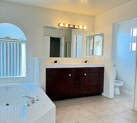 Great Location, Nice established neighborhood walking distance to schools! SPACIOUS 5 bedrooms 3 bathrooms home features 2 bedrooms, bathroom and Laundry room downstairs. Family Room has a fireplace. Nice staircase leading to 3 bedrooms upstairs. One room has french doors that opens to balcony that faces the street. Master bedroom has a small retreat and Bathroom featuring his and hers sink with Shower and bathtub, also has a Walk-in Closet. The homes has a LARGE RV. Home HOA includes: common landscape areas, community park, and Club House, Jr. Olympic Pool, Spa, Wader pool, Basketball Court, Fitness Center, Volleyball Court, and Playground.