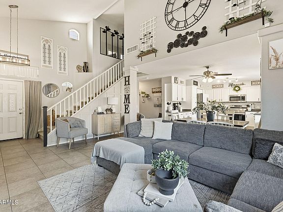 Filled with natural light and designed for everyday comfort, this 4-bedroom, 3-bath home offers a layout that fits today's lifestyles. A full bedroom and bath downstairs create a perfect setup for guests, aging parents, or a home office. The open-concept kitchen, dining room, and family room flow seamlessly together, making it easy to gather and connect. The kitchen features abundant cabinetry, generous counter space, and a functional layout for cooking and prep. Upstairs, the primary suite includes dual sinks, a central make-up vanity, separate tub and shower, and walk-in closet. Vaulted ceilings enhance the home's airy feel, and a cozy fireplace provides seasonal charm. Come see how well this home lives in person—it offers space, light, and comfort that photos can't fully capture.
