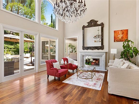 Welcome to luxury, and resort style living in this extraordinary home on sprawling grounds in exclusive Mountain View Estates. Enter through the dramatic grand foyer to a spectacular living room with two-story soaring ceilings, fireplace, stunning arch windows capturing natural light and views of the lush surroundings. The entry level also includes an impressive banquet size formal dining room, spacious & bright family room with fireplace & wet bar, large gourmet center island kitchen with high-end appliances, breakfast nook and three generous size bedrooms, one currently used as a gym, can be an office. Upstairs a sumptuous, private master retreat is enhanced by an adjacent sitting room with romantic fireplace, large dressing room, two custom walk-in closets, a luxurious master bathroom with jetted tub, oversized shower, dual vanities, and there is also an additional spacious ensuite bedroom with balcony. Outside, a spectacular resort-like yard awaits. This private, lushly landscaped oasis with pool, spa, waterfall, fire-pit, custom BBQ center, multiple patios, and pavilion with fireplace is perfectly designed for relaxation and entertaining. This exceptional property is located in the coveted Las Virgenes School District and enjoys miles of local hiking and biking trails, The Commons Shopping Center and nearby beaches