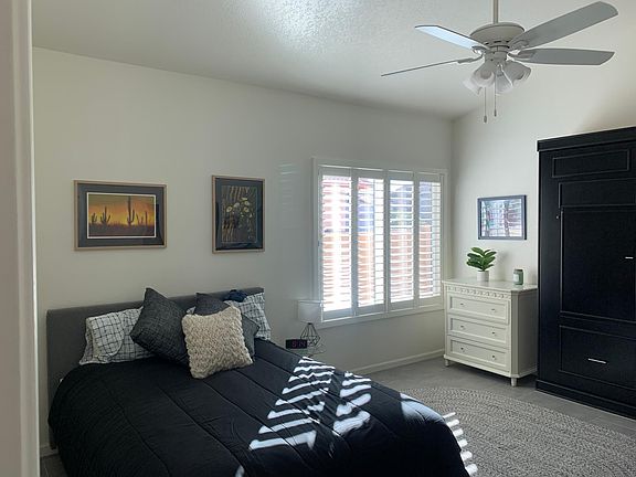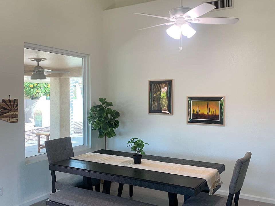 Bright & airy, updated home in the gated community of Palo Verde. Nice, private backyard with table & chairs for 6, entertaining area with couch & 2 chairs plus a barbecue. Master bedroom has a king bed & walk in closet. 65" tv in the master bedroom. Master bath has double sinks, private toilet & tiled, walk-in shower. Guest bedroom has a queen bed, desk & chair & also a Murphy bed. Guest bath has a tub/shower combo.