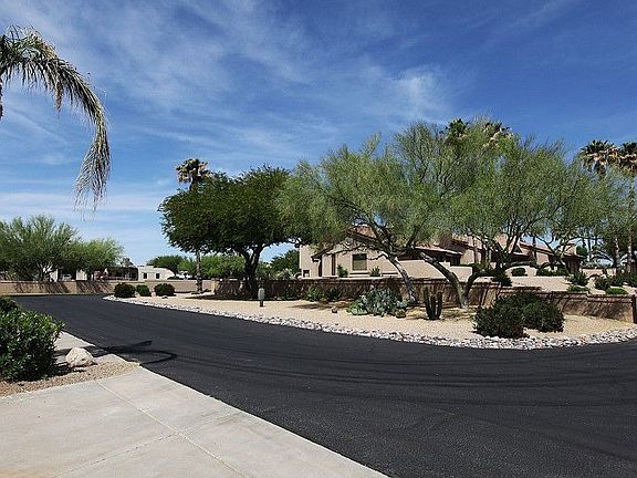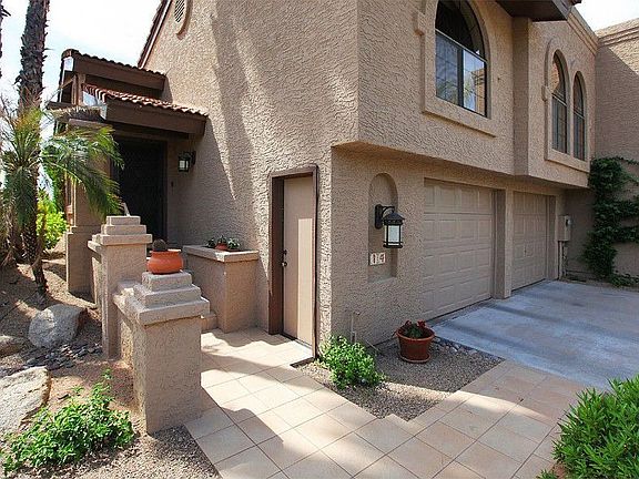 This bright end unit in The Villas is furnished and move-in ready! It features an open great room with high ceiling and fireplace, and adjoining dining area, two spacious bedrooms and baths up a few steps. Charming patio has an awning and plenty of space to relax and enjoy the wonderful mountain views. Large two-car garage with storage area comes complete with golf cart. Fully furnished means EVERTYHING - dishes, linens, furniture, accessories, tools - lock, stock and barrel! The Villas homeowners association takes care of exterior landscaping and paint so you can spend your time golfing, participating in community activities or just enjoying the beautiful Rio Verde setting.