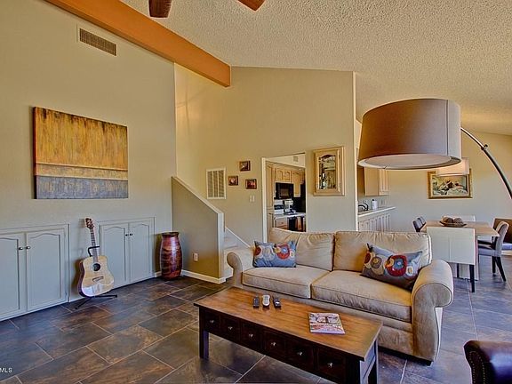 If ''turn-key with views'' are your critera, this is the townhome you have been looking for ! Wonderful 2 bedroom, 2 bath unit with warm neutral wall tones, vaulted ceilings, fireplace, and easy-care tile flooring..Beautifully re-done cabinetry in kitchen coordinates the entire downstairs living space.Exit from great room to private patio overlooking beautiful mountain views to the East. Townhome offered fully furnished at this price with a few exclusions..(See supplemental remarks.) Don't miss the opportunity to make this your home in the scenic golf community of Rio Verde.