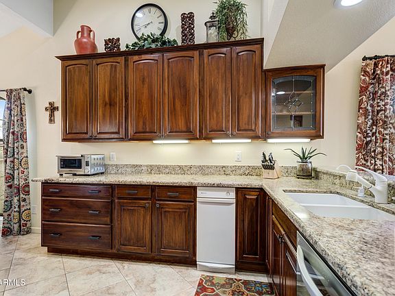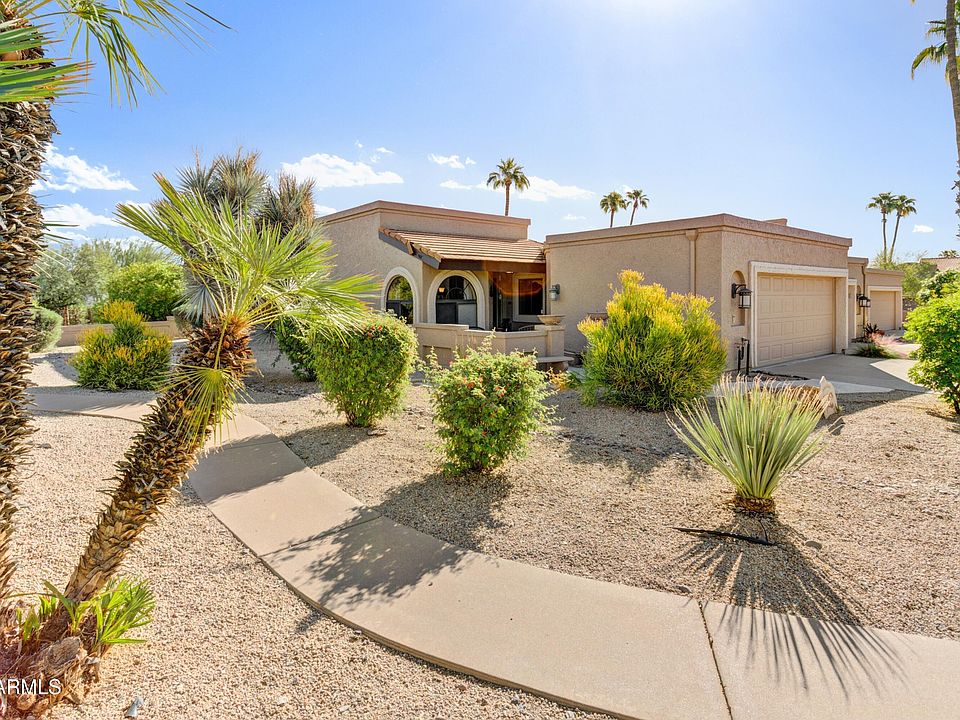 TURNKEY townhome in the Golf Community of Rio Verde. This single level corner unit borders common area and a wash for plenty of privacy. Expanded patio to enjoy the vistas. 2 bedroom and 2 bath, great room and 2 dining areas. Stainless steel appliances, granite counters and good workspace in the kitchen. 2 car garage with storage cabinets and closets. Come and enjoy the Rio Verde lifestyle.