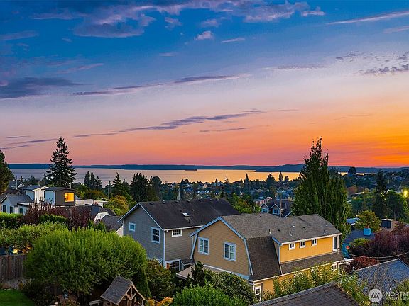Discover a truly one-of-a-kind 1924 Magnolia Colonial, set on a rare oversized lot with stunning Puget Sound views. Impeccably cared for 38 years, this home blends original charm with unexpected modern touches. From the original tiled fireplace, moldings, to rich hardwoods, every corner tells a story. French doors open to private two-tier deck where sunsets paint the sky. Remodeled kitchen & breakfast nook frame west-facing views, creating a space that’s both functional and inspiring. Upstairs, 3 bedrooms & 2 bathrooms offer quiet retreat and dreamy views from the upper deck. With flexible lower-level space and beautifully landscaped private yard, this home offers endless possibilities, all wrapped in character you won't find anywhere else.