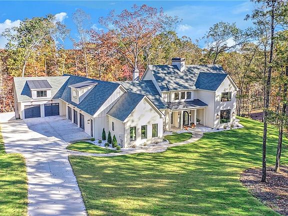 Welcome to this stunning, custom-built Modern Home, completed in Spring 2025, and perfectly nestled on a private, wooded 2.11-acre lot. Every inch of this residence showcases exceptional craftsmanship, thoughtful design, and high-end finishes throughout. Step inside to find soaring cathedral ceilings, custom-tinted Pella windows (main house & carriage house) , and an oversized double arched iron front door framed by 19th-century stone accents. The open-concept great room flows seamlessly into the dining area and chef’s kitchen — ideal for entertaining. Property Features 6 Bedrooms | 5.5 Baths | just over 5,200 Sq Ft. For those auto enthusiasts this home features a 5-Car Garage (each with Wi-Fi–controlled openers, 8-ft custom doors, and 220V EV outlets for convenient auto charging). Separate Guest Quarters / Carriage House complete with full kitchen, living area, and private suite. Future expansion available upstairs (already framed and spray foam insulated). Three Primary Suites on Main – Master suite and secondary master suite on the main level of the main house. Master suite on the main level in the carriage house. 3 Spacious Bedrooms Upstairs with dual-vanity bath. Bonus/Theater/Media Room with full bath, painted in designer Iron Ore tone & tucked privately away upstairs. Could be used as a flex space for an additional 7th bedroom suite. Interior Highlights Designer wood-beam ceilings in both main-level suites. Gorgeous Private Office space conveniently located off the main living room. 14-ft accordion custom glass doors opening to the rear patio and pool area. Chef’s kitchen with oversized island, high-end appliances, under-counter wine cooler, panel-matched dishwasher, and a mix of antique bronze and polished nickel hardware. Butler’s pantry with built-in beverage fridge and full custom cabinetry. Fully built-out walk-in pantry and laundry room with built-ins and folding station. Master bath with expansive tile shower, dual vanities, his-and-hers closets, and direct laundry access. Every bathroom features custom tilework and glass shower doors. 8-ft doors throughout main levels of both homes. Exterior & Systems feature Brick, Stucco, and Board & Batten exterior with LED soffit lighting front and back. Complete spray foam insulation and dual upgraded Trane HVAC systems with 4 Wi-Fi–zoned thermostats make this home super energy efficient. Complete water filtration system servicing both homes. Saltwater pool with turf surround, Jandy programmable pump system, LED lighting, and in-ground drainage. Outdoor living: patio plumbed for propane kitchen, fenced turf area, 4 custom garden boxes, and play area featuring wood/pea gravel staircase, swing set, and in-ground trampoline. Extensive sod and landscaping with 8-zone Rainbird Wi-Fi irrigation system. Large driveway and extra-wide turnaround space. Located in the highly sought-after Creekview High, Creekland Middle, and Macedonia Elementary school districts. This extraordinary property offers a perfect balance of luxury, privacy, and functionality — a truly one-of-a-kind home built to the highest standards.