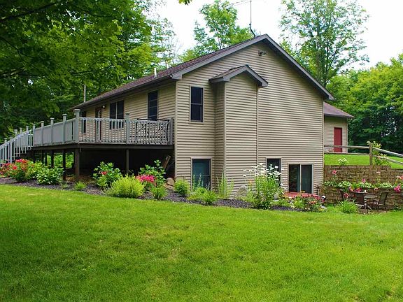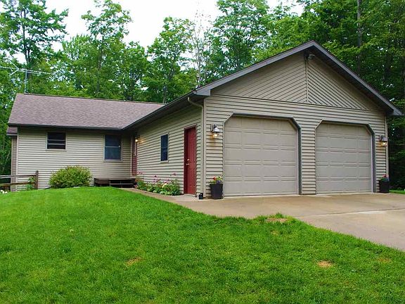 Beautiful Ranch with Full Finished Walkout Basement - sits on 7 peaceful wooded acres and is only 5 minutes form town! 3 bedrooms and 3 baths. Lovely open floor plan with cathedral ceilings, hard wood floors, tile, solid surface counter tops, private master suite, main floor laundry and many extras throughout - Two car garage and a 32 x 56 pole barn for all your toys! Huge deck and professionally landscaped. OPEN HOUSE 10/29/2017 FROM 12 NOON TO 2