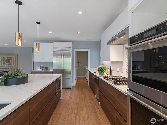 Nestled among lush greenery, this 4100 s.f. custom home was completely rebuilt in 2020 with a focus on modern efficiency and everyday comfort. The main floor showcases an open great-room design, blending living, work, and entertainment spaces. A chef’s island with seating and a spacious walk-in pantry anchors the kitchen, while French doors lead to a private deck overlooking nature. Upstairs, the serene primary suite is joined by three additional bedrooms. The daylight basement offers a versatile retreat with a bedroom, home theater potential, and flexible activity space. Just steps from schools, parks, and all the amenities Wedgwood has to offer!