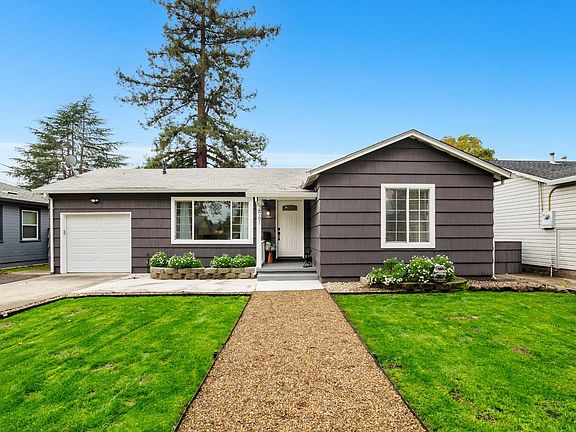Welcome to 2561 Pacific St, Napa, a charming single-family home that embodies comfort and style. With a cozy 898 square feet, this residence features two spacious bedrooms and a modern bathroom. The living room features a large, picturesque window that brightens the space and highlights the home's charm, complemented by sleek laminate floors and elegant recessed lighting. French doors from the light-filled kitchen open directly to the beautifully landscaped backyard, offering effortless indoor-outdoor living. The updated kitchen has modern upgrades and ample storage space. The home offers a one-car garage along with the added convenience of an in-unit washer and dryer, and features updated electrical throughout. Stay comfortable year-round with central heating and air conditioning. The backyard is a standout feature, showcasing a serene, park-like setting with a lush green lawn, mature trees, a majestic redwood, and clean rock-lined borders. Whether you're a first-time homebuyer or looking to downsize, 2561 Pacific St presents an excellent opportunity to own a piece of Napa's inviting community don't miss the chance to make this charming abode your own.