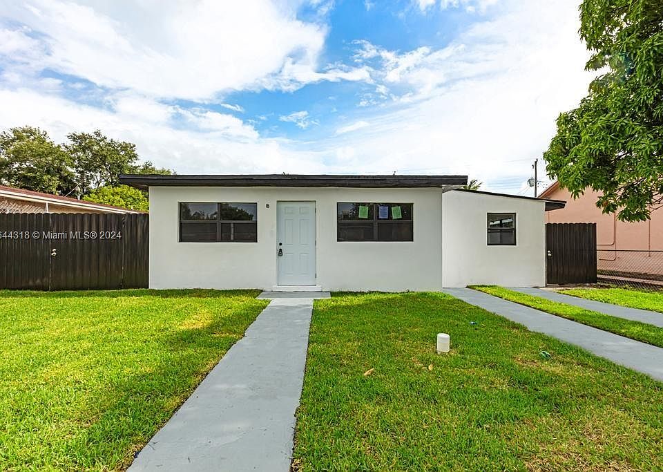 Welcome to your dream home! Completely remodeled 4 bedroom, 2 bathroom home offers a unique opportunity with the ability to isolate a master bedroom as an in-law suite or private retreat. This home counts with all new electrical, PVC plumbing, and brand new central A/C. Recently updated with quartz countertops and custom cabinetry. Stainless steel appliances included. Everything is permitted! Perfectly located just minutes from the excitement of Hard Rock Stadium and major highways, this residence promises both luxury and accessibility. Fenced ample backyard with a CBS storage shed measuring 10x12 and room for a pool. Come show this beautiful property, it wont last!!! Any questions or offers please refer to listing agent's email. Schedule your showings via Showingtime.
