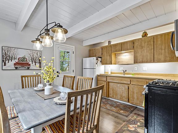 ''Romantic Retreat'', a sensational turnkey cottage beautifully situated on a wooded lot, set back from the street with amazing curb appeal. Entertain friends & family on the expansive front deck while enjoying the magical sounds of nature. Step inside this quaint cottage and admire all the upgrades from Dual pane windows, privacy window shades, warm laminate flooring, updated baths, & lovely furnishings. Other features include an eat-in kitchen with peaceful views of the front deck, corner wood-burning stove, & beamed ceilings. Both bedrooms are located upstairs and offer tree-top views & great natural light. The primary bedroom has an attached 3/4 bath. This amazing cottage is perfect for full-time or part-time enjoyment and the location is close to town offering eateries, art galleries, wine bars, & shopping. Put this beautiful turnkey cottage on your list and start enjoying the summer season with free outdoor concerts, world class hiking, & quiet time with friends & family.