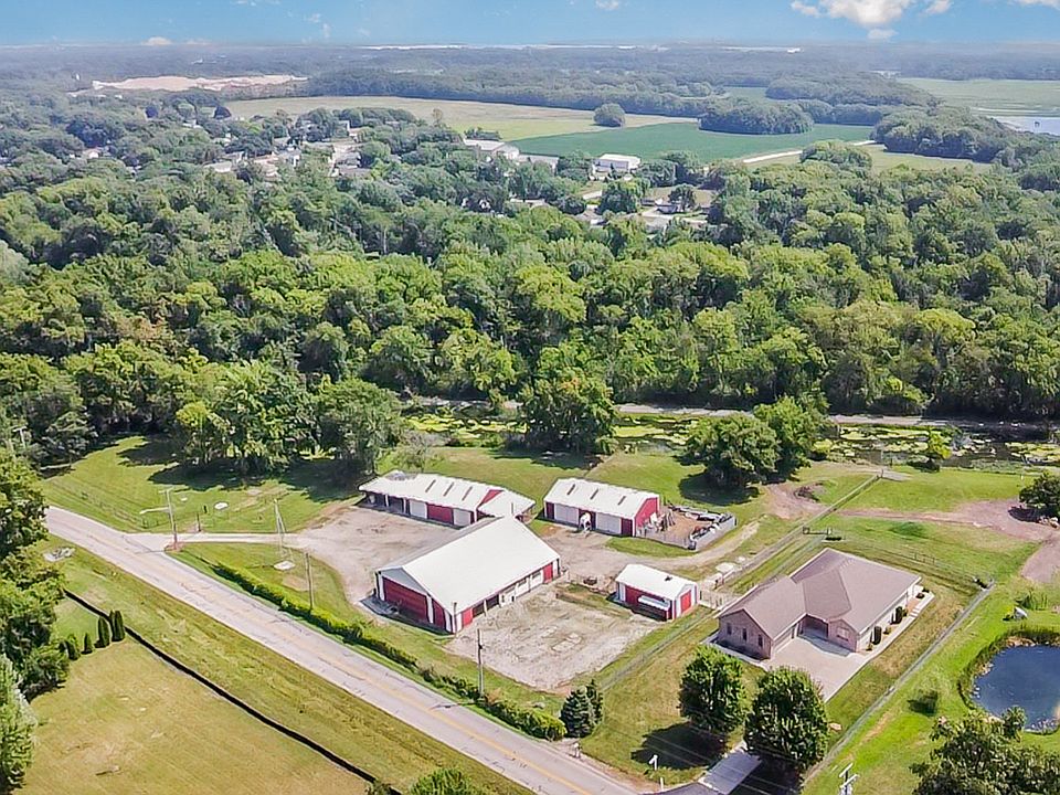 Live and play all in one place. Space for all of your toys under multiple roofs. Available for the first time ever, the "Rittof Farm." A one-of-a-kind property created by one-of-a-kind. Sitting along the historic I&M Canal, this property offers quiet country living with a 2300 sq. ft. ranch home with 4 barns and endless possibilities, while still being in town and close to I-55 and I-80. A concrete drive leads to the home, built in 2010. Guests are welcomed by a tiled foyer, with secondary bedrooms and hall bath to the right and the master suite set apart for privacy. The hallway opens into a wide living/kitchen/dining area with windows overlooking the canal and trail. The kitchen features custom Birch Romar cabinets, plenty of counter space, a pantry, and island with sink and breakfast bar. The mudroom/laundry layout is a highlight-half bath, cabinets, counters, an "indoor clothesline," and direct access to the master walk-in closet, bath, and bedroom. Perfect for coming in from the barnyard without tracking dirt through the house. The master bath includes dual sinks, makeup mirror, and a walk-in shower with dual showerheads, bottle shelf, and foot rest. The master also has canal views and access to the covered porch. The basement-9' ceilings, daylight windows, bath rough-in, and radiant heat-offers tons of potential. Porches were excavated underneath for concrete storage/shelter space. Heating includes radiant floor and baseboard, plus traditional furnace/AC. Private well with Iron Breaker system and private septic. Oversized attached 2-car garage on the house. The barnyard has access from Blackberry Lane and from behind the home. The main barn (40x70) has concrete floors, electric, wraparound loft, enclosed storage/office, and a built-in crane lift. It is big enough to store all sizes of toys, or multiple vehicles. Water is available from its own well. Two additional barns (30x50 each) with electric and gravel floors, plus a 24x30 hay/feed barn with electric. Animals allowed with Village of Channahon approval. This 1.99-acre lot backs to the I&M Canal, with room to launch a canoe/kayak or fish. Four Rivers Environmental Center is just down the road. I&M Canal trail to walk, jog, or bike is across the canal. This property has been in the family for 75 years-and is now ready for the next chapter. Agent related to seller.