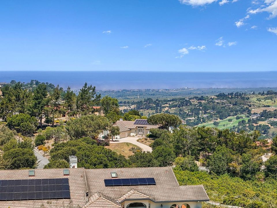 Set on a private 1.91-acre knoll with expansive views of the bay and the rolling hills along the Highway 68 corridor, this exceptionally maintained estate blends scale, comfort, and versatility. The main residence features vaulted ceilings, exposed beams, and sunlit living spaces that flow seamlessly to the outdoors.