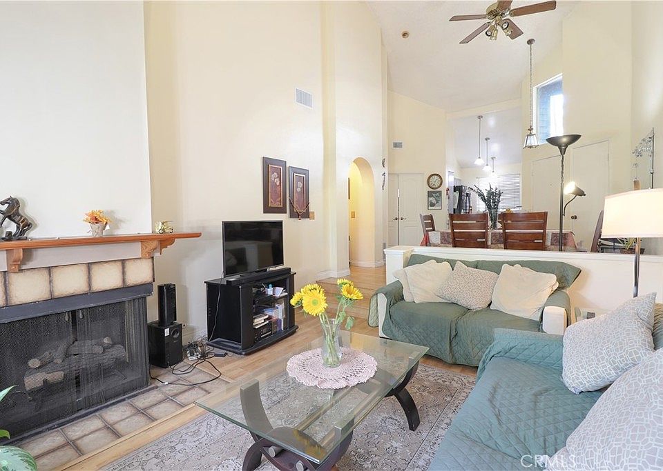Charming 2-bedroom, 1-bath condo on the 2nd floor. Soaring cathedral ceilings create a bright and spacious feel throughout. The inviting living room and primary bedroom both open to a private balcony overlooking serene tree-lined grounds and swimming pool area. The kitchen features refurbished cabinets, new quartz countertops, a cozy breakfast counter, and plenty of storage. Appliances include refrigerator, stove, new dish washer and in-unit laundry set. The second bedroom has plenty of natural light and conveniently adjacent to bathroom and living areas. Located in a highly desirable community, residents enjoy exceptional HOA amenities—2 sparkling pools, relaxing spa, water-filled creeks and lush landscaping. Includes one covered parking space (#449) plus one uncovered space (#437). With its move-in-ready condition, fantastic location, and easy freeway access, this condo is a true value opportunity not to be missed!
