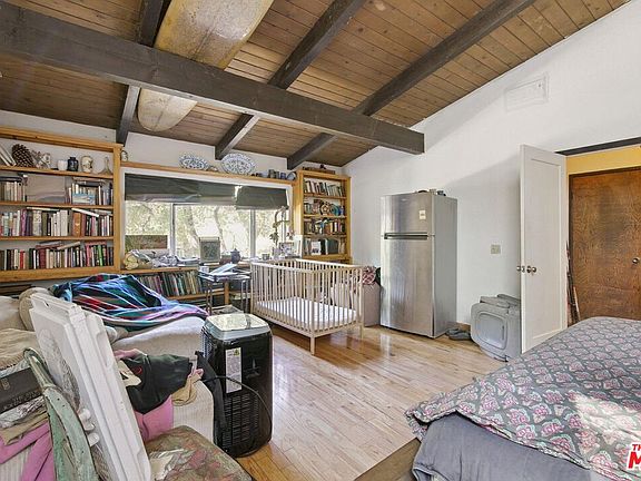 25614 Timpangos Dr is a retreat that feels worlds away while still offering convenient access to the coast and city. The home's character stands out immediately, with exposed wood beams, lofted ceilings, and hardwood floors that create warmth and rustic charm. Every detail complements its natural setting, making the house feel like it belongs within its tree-lined surroundings.The lot itself is a highlight, offering exceptional privacy and the sense of being tucked into your own world. Mature trees surround the property, providing shade and seclusion, while open spaces allow for relaxation or entertaining. It's the kind of environment that feels rural and removed, yet still places you just six miles from Malibu's beaches.