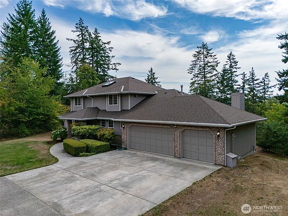 Custom 2-story w/fully finished basement on 18.56 acres. Potential to subdivide. Territorial view of mt & valley. Landscaped lawn, garden beds, large driveway w/room for RV parking & attached 3-car garage. Big deck off the kitchen to watch sunsets or the grazing deer nearby. Main floor includes living room, formal & informal dining, kitchen island cooktop, family room A/C, 1/2 bath, laundry room, den. Vaulted ceiling entry, hardwoods, & skylight lead upstairs to 3 bdrms, 2 baths including the primary suite w/jetted tub & walk-in closet. Downstairs has 2 extra finished rooms, 1 bath, rec room w/kitchenette & huge storage room. Propane gas FA, septic, public water in this comfortable country home, private, yet close to all amenities.