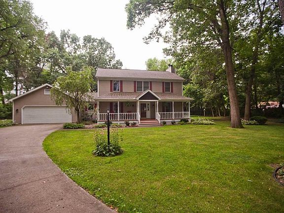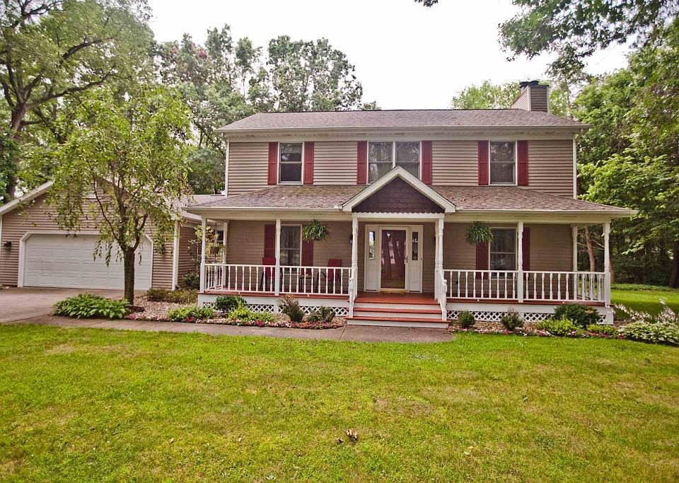 What a great home seated on a private lot and almost 2 acres. Long concrete driveway. Great front porch. Oversized 2 car attached garage. Backyard oasis with newly painted deck, trees, large yard space, tree house, and shed! Wonderful front entry to home. New flooring and paint throughout a lot of this home. Large eat-in kitchen. Formal dining room. 1st floor laundry. Large living room with fireplace. Master suite with huge walk-in closet and bathroom featuring a soaker tub, double sink vanity, and stand-up shower. The basement features another fireplace, wet-bar, and great office space. Schedule your private tour today!