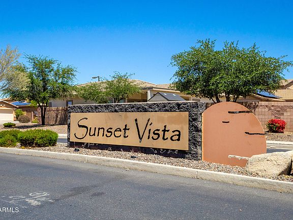Beautiful spacious 3 bedroom 2 bathroom plus home in the quite neighborhood of Sunset Vista in Buckeye, corner lot right next to the common area with a basketball court and playground. Updated landscaping front and back with watering system. Brand new kitchen appliances show off this eat in kitchen. Open floor plan featuring a family room and great room. Primary room has a huge walk in closet, private toilet room, garden tub and separate shower with its own exit door to outside patio. All other bedrooms are nice sized and have sliding door closets. Entrance has a quite covered patio with beautiful views. Huge backyard with covered patio as well. Conveniently located just a few miles off the I-10.