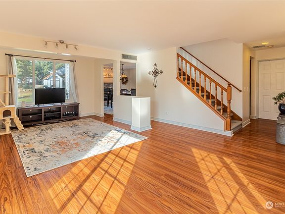 Priced to sell. Wonderful, well appointed home situated on large corner lot in Crystal Gardens. 3 bedrooms, 2.5 bathrooms. Open concept formal living & dining rooms. Family room w/propane fireplace & casual dining room/dining nook. Kitchen w/island, baker's rack, pantry & tiled backsplash. Primary bedroom with walk in closet & private bathroom w/linen closet. Main floor laundry & air conditioning. Generous 3 car garage w/space for work area. RV parking w/50 amp hook up. Fenced backyard w/large patio for entertaining & 2 outbuildings. Conveniently located w/easy access to JBLM, freeways, dining, shopping & more. Buyer/buyer's agent to verify all information to own satisfaction.