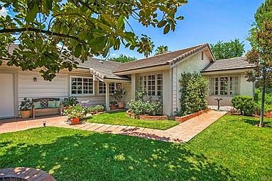 Warm and welcoming from the minute you open the front gate to the beautifully landscaped yard, this well kept home does not disappoint. Features include lovely hardwood flooring, living room with fireplace. Sitting room with built in cabinetry open to the kitchen with island and canned lighting. Dining room area off of kitchen. French doors open to the office/bedroom with beautiful built ins and down the hall there is an updated powder room, another bedroom and hall bath. The generous sized master bedroom has a tranquil sitting area and bathroom. Outside, enjoy the covered patio area and large, tranquil, landscaped yard. Cul-de-sac location near paseo entrance.
