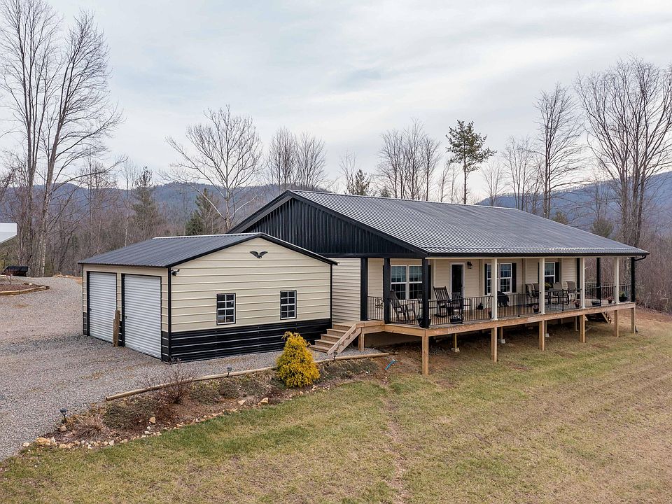 Perfectly set on a tree-shaded lot, it feels like home the minute you pull up. This property was completely renovated in 2022 making this home a gorgeous mountain retreat. The living room is warm and inviting, with large windows and natural lighting. A cozy dining area looks out to the backyard and flows a spacious kitchen. The master bedroom is large with plenty of closet space. The updated master bath with beautiful tile and glass shower make this entire room an owner's retreat! This property also features a large detached garage that would also make a great workshop. In addition to the main residence, there is also a newly constructed tiny home on the property that could be used for friends and family or rented for additional income. You'll enjoy the covered front porch both morning and night, so bring your coffee, and make this house your home.