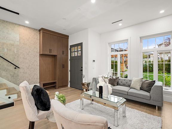 Welcome to this Brand new Side by Side duplex! This functional floor plan offers 4 bedrooms & 5 bathrooms over 3 levels and a big crawl space for storage. The open & airy main level boasts 10' high ceilings, wide plank Oak wood floors, built in shelves, chef's kitchen with Fisher & Paykel built-in appliances and Quartz countertops. Second level has 3 bedrooms, 3 baths and a Walk-in Closet. Basement offers 1 bedroom legal suite. Some other features include A/C, smart doorbell, Security Cameras, single garage and a private yard