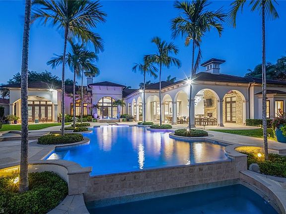 On one of the most desirable lots in Escada at The Ritz-Carlton Tiburón, this is a rare opportunity to own a thoughtfully updated luxury estate with sweeping lake and golf course views. Move-in ready, this light and bright residence offers an expansive floor plan all on one level, featuring soaring ceilings, European white oak flooring, custom millwork and designer lighting that create a refined ambiance throughout. Multiple living areas are designed for relaxation and entertaining, including a stunning open-concept gourmet kitchen with neutral finishes, custom cabinetry, a large island, gas cooking, and top-of-the-line Wolf and Sub-Zero appliances. The expansive primary suite is a private retreat with spa-like finishes, dual closets, dual baths and French doors opening to the covered lanai. Three generously sized guest suites, a large den, and a separate study provide flexible space for comfort and functionality. Outdoors, enjoy a resort-style setting with an impressive gas-heated saltwater pool and spa, water features, summer kitchen, fireplace, covered living areas, upgraded lush landscaping, and a spacious patio overlooking the 14th fairway with preferred southwestern exposure. Additional highlights include impact glass with electric shutters and screens, whole-house generator, newer roof, updated pool equipment, newer HVAC systems 2020–2025 and more. A three-car garage with circular drive and a double-gated entrance complete this exceptional offering. Tiburón membership is optional for access to championship golf, beach privileges and world-class resort amenities. This property represents the pinnacle of Naples living, where timeless luxury meets everyday comfort in a premier gated community.