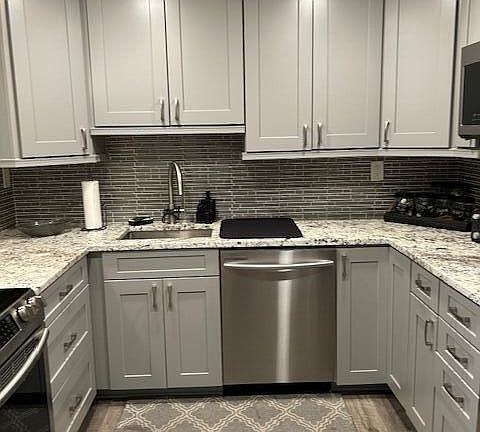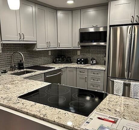 Absolutely stunning 2 bedroom, 1 bath unit that has been completely remodeled with beautiful kitchen, updated bathroom, luxury vinyl flooring thru out. King size bed in master. 2nd bedroom will not be available, owner will use this bedroom for her personal storage. Beautiful patio overlooking lush landscaping and a peek at the lake!