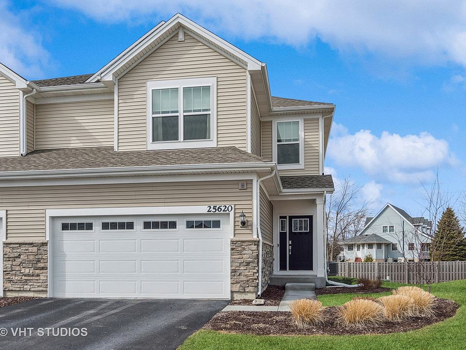 This stunning two-story townhome offers a modern, open-concept floorplan designed for both comfort and style. The spacious family room is perfect for relaxing or entertaining, seamlessly connected to the formal dining room, which provides easy access to the gourmet kitchen and custom outdoor space. The chef-inspired kitchen features elegant cabinetry, a central island with overhang for extra seating, quartz countertops, a pantry and all stainless-steel appliances, enhanced by pantry custom closet. Luxury vinyl plank flooring flows throughout the main level. Custom wainscotting leading Upstairs to the three bedrooms. A luxurious owner's suite is a private retreat with a spacious walk-in closet, double vanity sinks and separate shower. You'll find two secondary bedrooms conveniently located near the hall bathroom. A second-floor laundry room with ultimate convenience. The full FINISHED basement offers additional living space with plumbed bathroom to be added for next owner. The attached two-car garage has ample space to fit any car. The property's curb appeal is enhanced by professional landscaping and full sod, while the backyard is ready for entertaining on your large concrete patio. Residents will appreciate the convenience of HOA services that cover lawn care and snow removal. Located just moments from downtown Plainfield, you'll enjoy easy access to recreational amenities, dining, and entertainment options. This home is situated within the highly regarded Plainfield School District 202, with access to Plainfield North High School, making it the perfect choice for your next move!