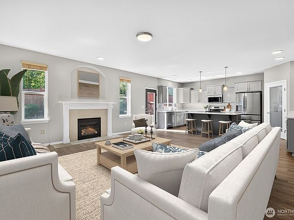Beautifully maintained & thoughtfully updated with high-quality finishes, this Covington home feels brand new inside & out! Featuring new quartz countertops, high-end Frigidaire Gallery appliances, freshly painted cabinets, luxury vinyl plank flooring, plush carpet with upgraded padding, and modern LED lighting. Fresh Sherwin Williams interior & exterior paint add lasting quality. Brand-new furnace with central A/C (2025, 10-yr warranty) + a newer water heater offer peace of mind. Spacious layout includes a large bonus room, walk-in pantry, walk-in closets in every upstairs bedroom & a main floor bedroom/office. Pre-inspected for buyer confidence, with mature landscaping, irrigation system, community pond with walking path & prime location!