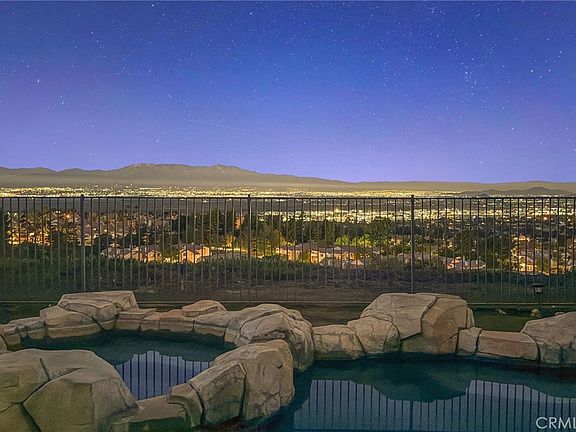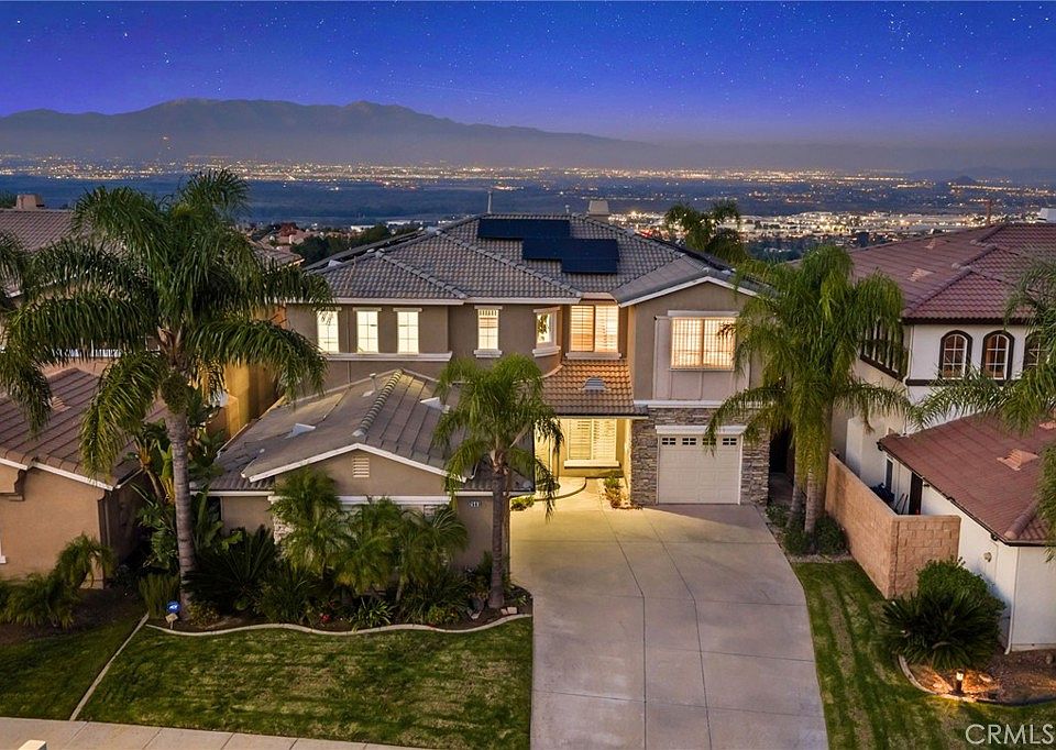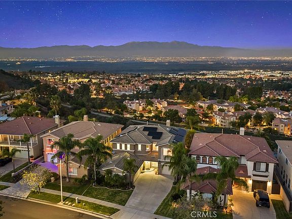 Perched in the scenic enclave of Sierra Del Oro, bordering Yorba Linda, this Mediterranean-inspired pool home captures breathtaking panoramic views of the San Gabriel and San Bernardino Mountains—including Mt. Baldy—and a glittering tapestry of city lights below. Perfectly positioned on a tranquil cul-de-sac with no homes behind, this 4-bedroom, 3-bath residence with a loft offers a rare blend of privacy, sophistication, and resort-style living. Inside, a grand foyer opens to soaring two-story ceilings and floor-to-ceiling windows that flood the living and dining areas with natural light, creating an effortless indoor-outdoor flow. Tile floors encompass the entire house, including brand-new floors upstairs. The chef’s kitchen, designed for both beauty and function, showcases gleaming granite countertops with a full backsplash, stainless steel appliances including a refrigerator, a waterfall island with bar seating, and a generous walk-in pantry—all seamlessly connected to the inviting family room anchored by a striking fireplace and expansive views. A main-level bedroom and a fully remodeled bath serve as a versatile retreat for guests or a home office. Upstairs, the primary suite serves as a private sanctuary with no neighbors in sight—only endless views of city lights stretching for miles. The spa-inspired bath features a freestanding soaking tub, a walk-in shower, and a custom-organized walk-in closet. Step onto the private balcony at sunset to enjoy the cool breeze and sweeping vistas. Two additional bedrooms and a spacious loft complete the upper level. Outdoors, the resort ambiance continues with a sparkling rock pool and spa, framed by dramatic views of the mountains and the city. Modern conveniences include a fully owned 46-panel solar system, water softener and filtration systems, and a split 3-car garage with built-in storage and direct access. Perfectly positioned just off the first traffic light leading to the 91 Freeway, this home offers unparalleled convenience—with swift connections to Orange County, the 91 express lanes, the 241 Toll Road, the Metrolink, and the scenic Skyline Trails for outdoor adventure. A rare fusion of elegance, privacy, and natural beauty—this exceptional home offers an elevated lifestyle in one of Sierra Del Oro’s most captivating settings.