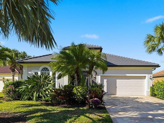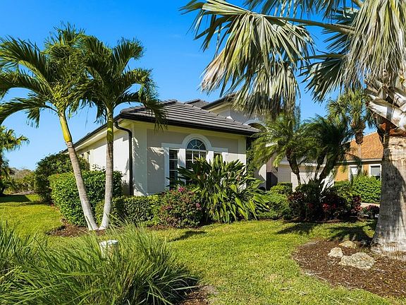 One or more photo(s) has been virtually staged. EXPERIENCE QUINTESSENTIAL FLORIDA LIVING in this BEAUTIFULLY CRAFTED 2- BEDROOM, 2-BATH HOME with a VERSATILE DEN—set within the HIGHLY DESIRABLE COMMUNITY of RIVERWOOD located on a PREMIUM "PRIVATE" LANDSCAPED LOT with SCENIC UNOBSTRUCTED VIEWS of the POND, NATURAL PRESERVE and BREATHTAKING SUNSETS. From the moment you arrive, the home’s inviting presence shines through with its etched front entry door, well-maintained mature landscaping, and striking engraved driveway that elevates the curb appeal. Designed to highlight its peaceful natural surroundings, the residence showcases wide, uninterrupted views of the shimmering pond and preserve. Large windows and an airy layout bring in abundant natural light, complementing tile flooring and the tasteful decorative touches found throughout. Architectural details—such as the graceful archways, soaring volume ceilings reaching approximately 10–13 feet, and the impressive glass door at the entrance—add charm and dimension to the interior. The open kitchen is thoughtfully appointed with granite counters, a complementary backsplash, stainless steel appliances, Reverse Osmosis, and an integrated desk area perfect for organizing daily tasks. The primary suite offers a quiet retreat with a tray ceiling, a generous custom walk-in closets, and a beautifully updated bathroom. Designer lighting and window treatments enhance the home’s overall refinement. And Lanai privacy shades (2024). Step outside to a spacious lanai featuring decorative engraved flooring and ample space for lounging or dining. Here, a sparkling pool and spa with brand new pool and spa pump ( 2025) —equipped with new roof solar panels ( 2025) . Solar Cover and Electric Heating— create an inviting haven for year-round enjoyment while taking in stunning evening sunsets. For peace of mind, the home also comes equipped with a Portable Generator, upgraded Storm Shutters and a 2024 QUALITY, HIGH EFFICIENCY AIR CONDITIONER and 2024 NEW TILE ROOF, adding value. Call for Showing Today!