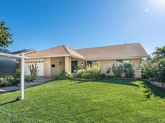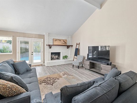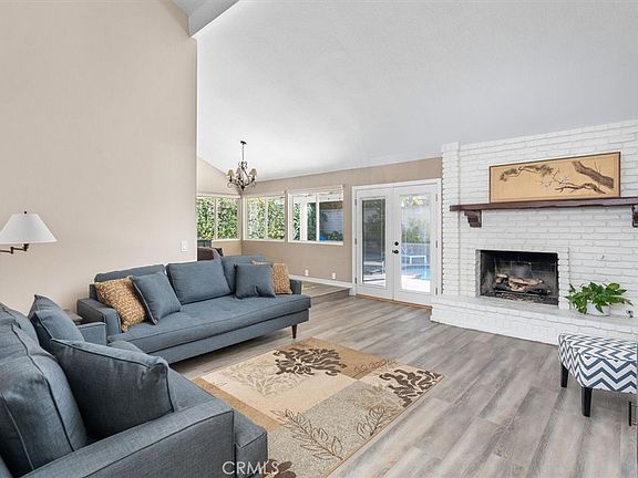 HIGHLY DESIRED, SINGLE STORY POOL HOME IN THE HEART OF VALENCIA! This charming and bright home with a neutral palette, sits on a beautiful cul-de-sac with an entrance to the Valencia trail system just a few houses down. Enter the foyer which steps down to the large family room and you will notice the high ceilings, wood burning fireplace and plenty of room for living life. To the left you will find your large, eat-in kitchen with bright cabinets, granite countertops and stainless steel appliances. Large windows over the sink provide abundant light in the kitchen and allow for a view to the low maintenance backyard with pool/hot tub and greenery. Choose to make the kitchen your eating area of choice or make the adjoining room your large dining space with plenty of room for entertaining or a large family eating space. This room can also be a secondary family room and used for game space, a reading library, children's playroom, office or more. Access to the outdoor living space and pool is available from this room as well as the family room. To the right of the family room are your 3 good size bedrooms and 2 updated bathrooms. The primary bedroom has a door to the pool area for easy access from this side of the home. The home has updated flooring, garage door, water heater and newer side gate. Enjoy how centrally located this home is with easy access to the mall, restaurants, schools and parks. And with the amazing trail system just steps away, one can walk or cycle to many of these locations. No mello roos or HOA!