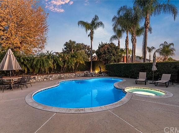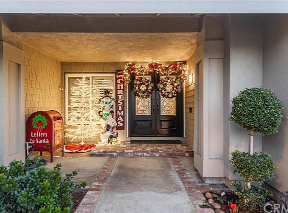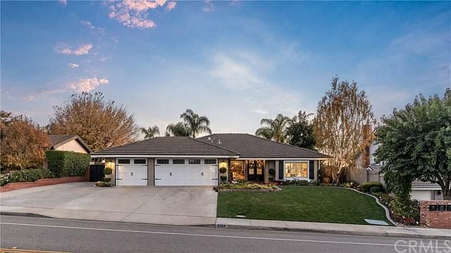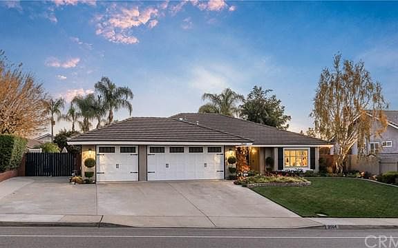 COMPLETELY REMODELED SINGLE STORY POOL HOME W/RV PARKING. Picturesque curb appeal features a green lawn, mature trees, brick planters, carriage house garage & covered front porch. Double doors open to a tiled entry & open floor plan w/crown molding & recessed lighting throughout the home. Living room w/carpeted floors & picture window overlooking front yard plus an adjacent dining room w/designer light fixture. Custom kitchen features wood patterned tile flooring, custom white cabinetry, granite countertops w/tiled backsplash, large island w/counter seating & light fixture, top-of-the-line stainless steel appliances including Wolf Range, separate Wolf built-in oven, spacious eating area & a beveled glass sliding door leading to the back patio and yard. Master bedroom w/carpeted flooring, ceiling fan, wood shutters, two closets & custom master bathroom w/dual sinks & walk-in tiled shower. Three additional bedrooms w/ceiling fans plus a matching custom hall bathroom. Indoor laundry room leads to attached three car garage. Beautiful backyard features a pool & spa which were re-plastered & tiled two years ago, sprawling covered aluma-wood patio cover w/recessed lighting & ceiling fans, grass, river rock & brick capped planters w/mature queen palms, privacy hedge & block wall perimeter.